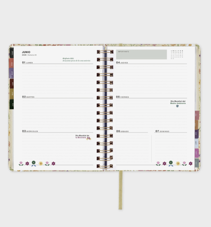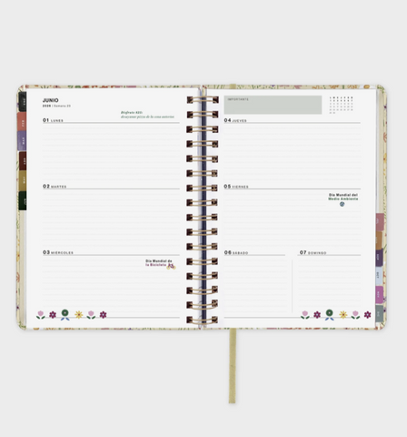 Tamaño de la agenda: 16,8x22 cm. - Tamaño de las hojas: 14,8x21 cm. - Peso: 540 gr. - Grosor: 2 cm.