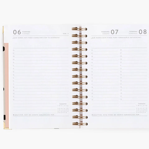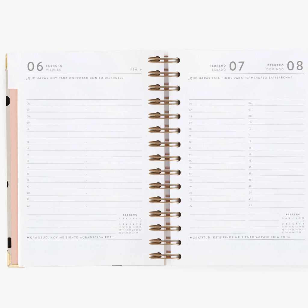 Esta agenda se va a convertir en tu mejor amiga y tu coach, porque te ayuda a organizarte, a mantenerte motivada y trabajar en tus objetivos con foco y constancia. Está hecha en España, con amor y sin prisas.