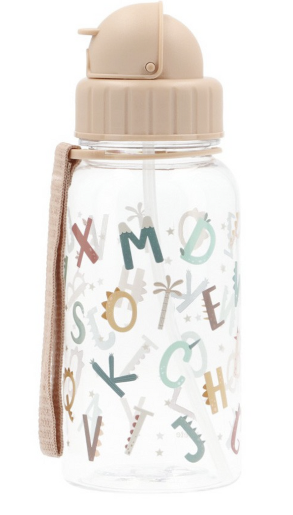 La botella tiene una pajita de silicona abatible que sale automáticamente cuando se abre la tapa y es ideal para llevar al cole.