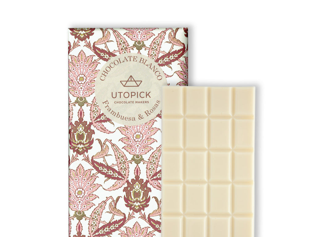 Tableta de Chocolate Blanco FRAMBUESAS Y ROSAS - UTOPICK