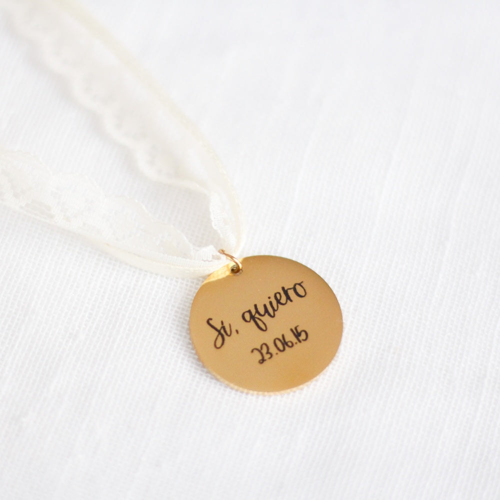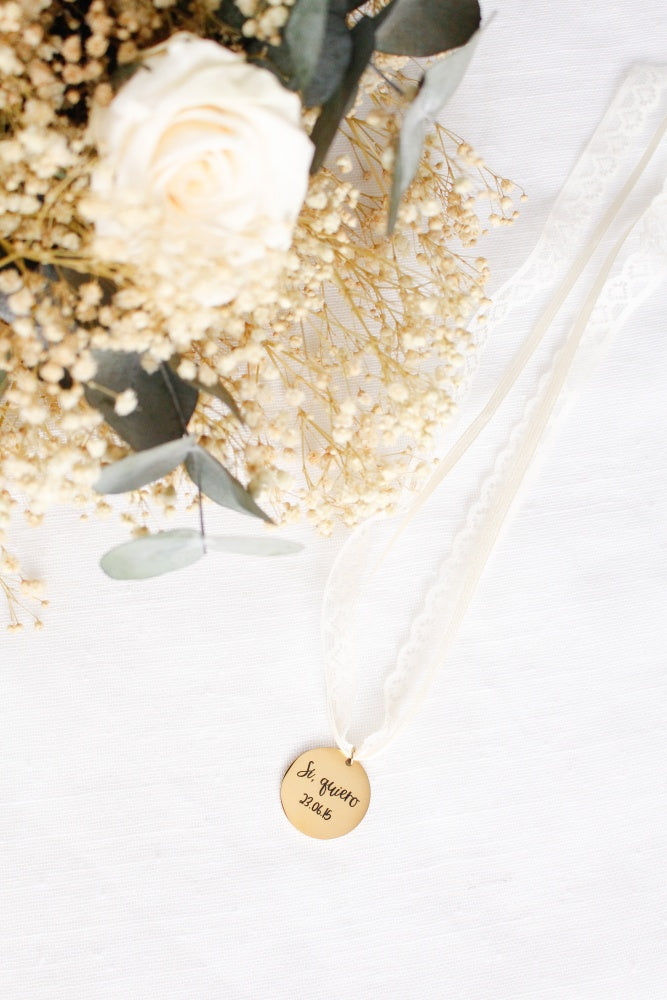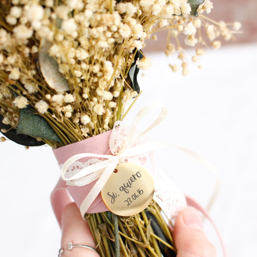 Nuestras medallas personalizadas para el ramo de la novia serán un plus MÁGICO para que la acompañe ese día.