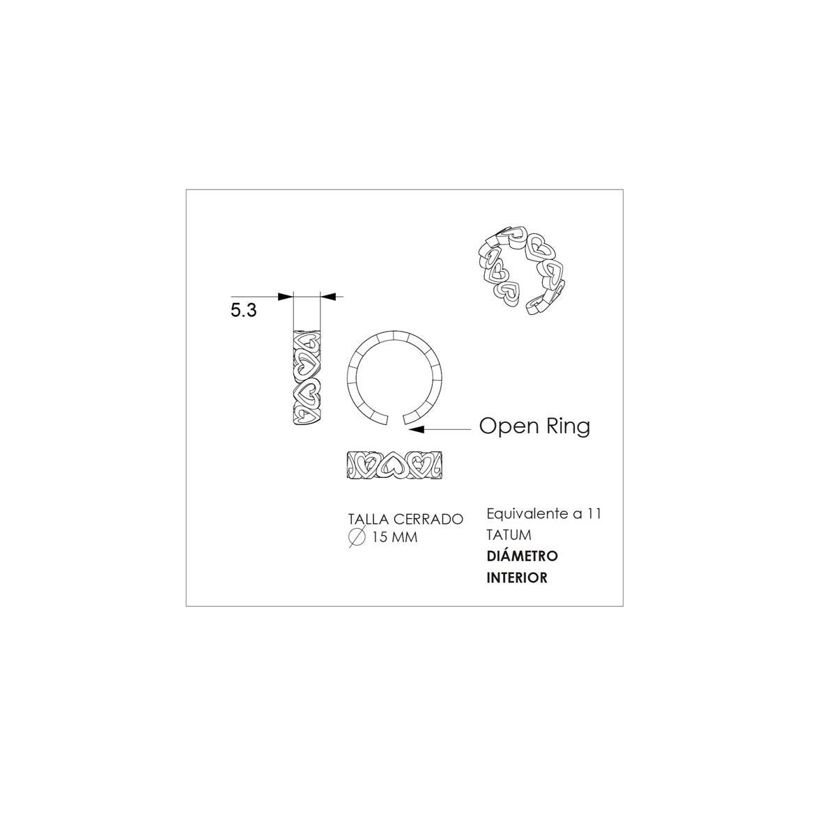 Anillo corazones de plata de ley con baño de rodio y esmalte. Anillo abierto, multitalla. Coleccion ANITA.