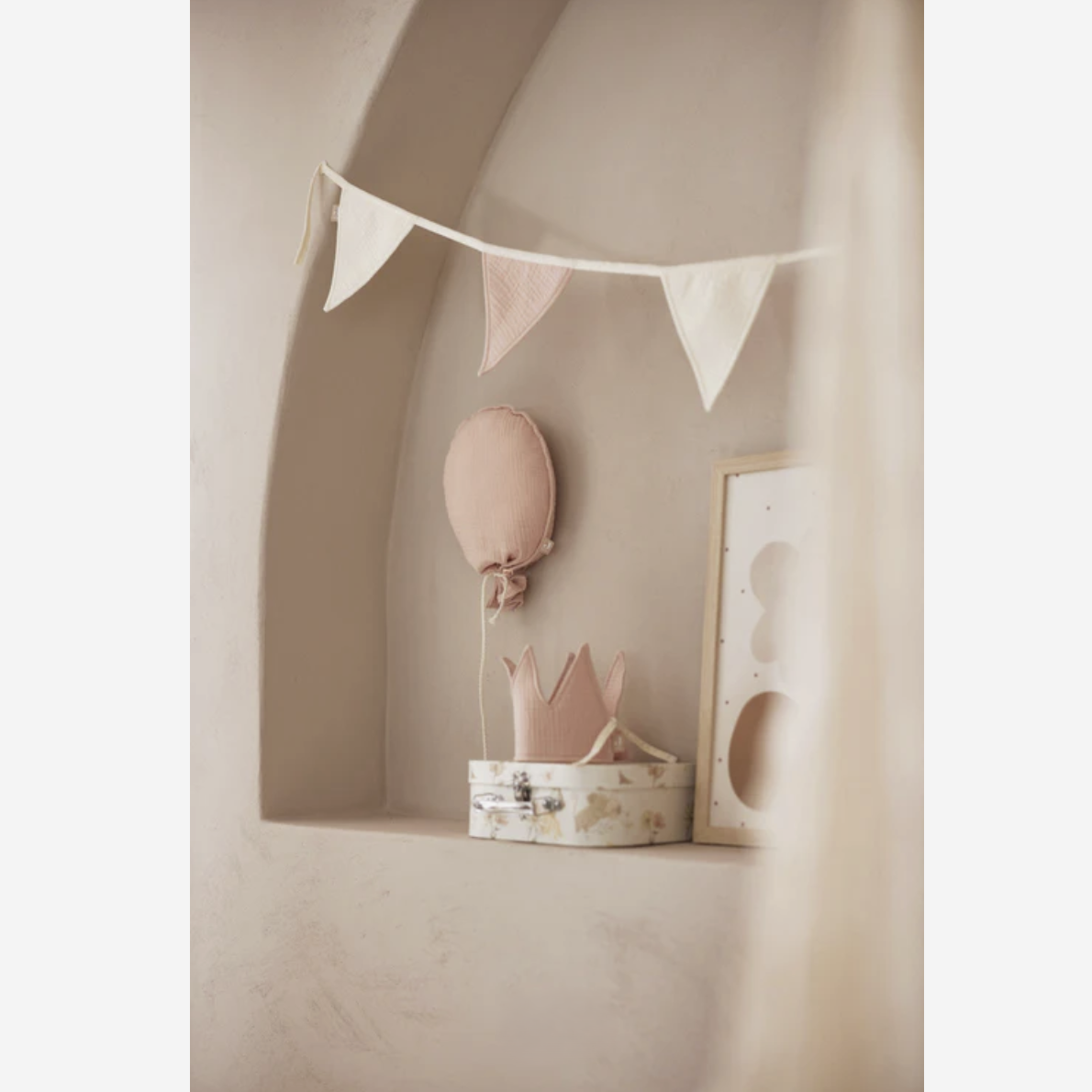 Esta corona combina perfectamente con los globos de algodón y las banderas a conjunto.