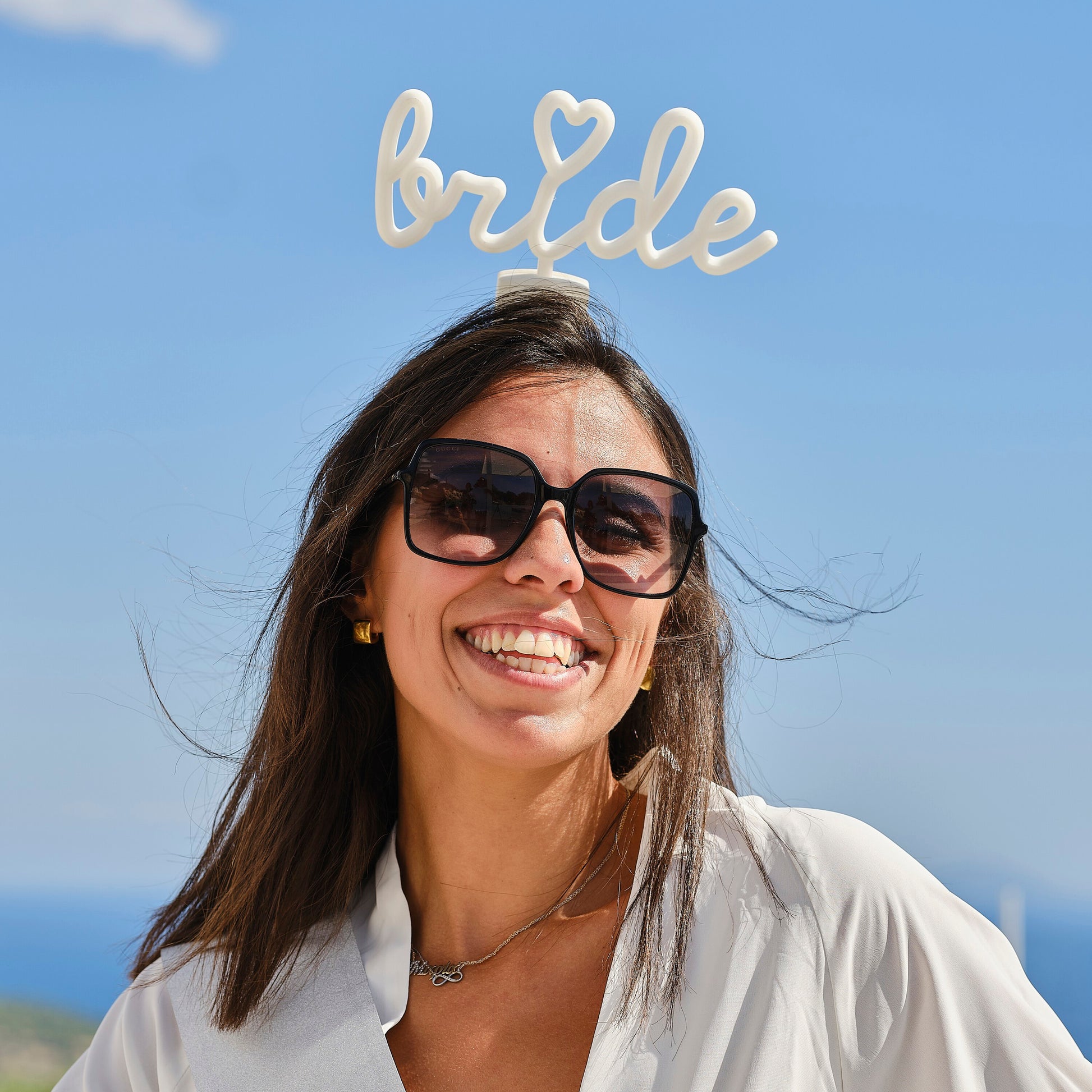 Esta diadema luminosa BRIDE es un accesorio imprescindible para cualquier novia para que se sienta muy especial, ¡además se ve increíble en las fotos de la despedida de soltera de día o de noche!