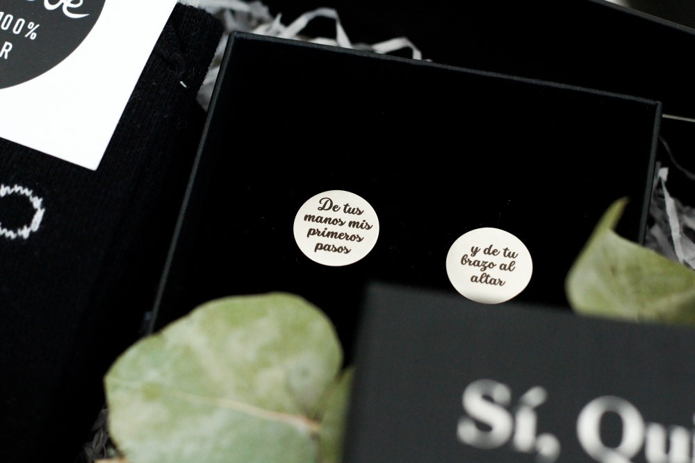 Gemelos De tus manos mis primeros pasos y de tu brazo al altar. Acero inoxidable.