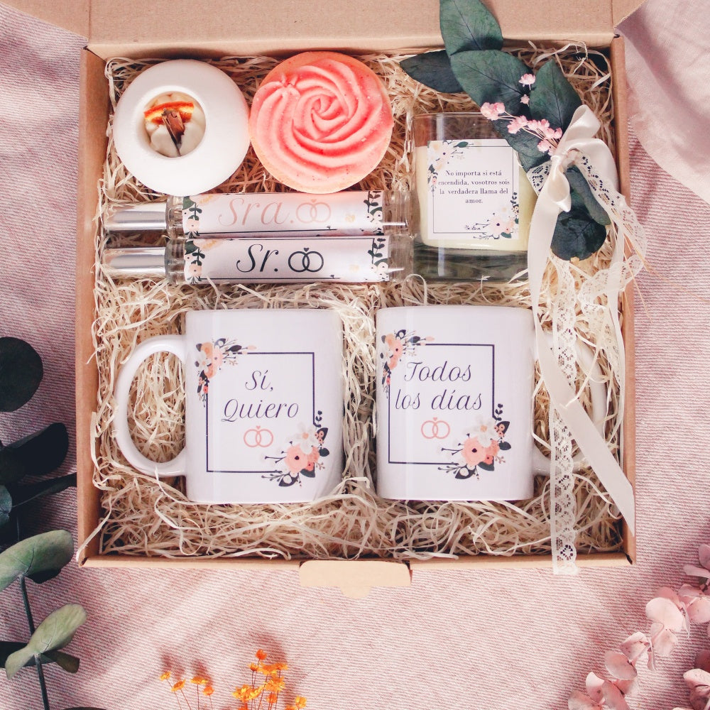 -Tazas para el desayuno juntos, una con el mensaje " Sí, quiero" y la otra "Todos los días".