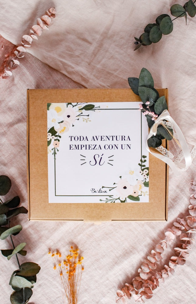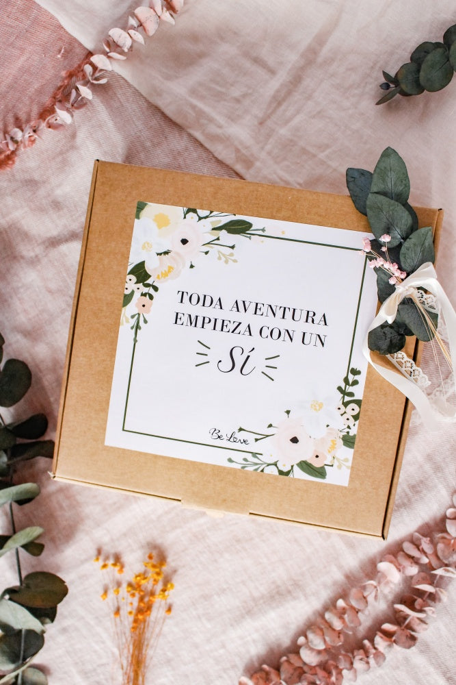 -Todo presentado en una bonita caja con el mensaje: " Toda aventura empieza con un sí".