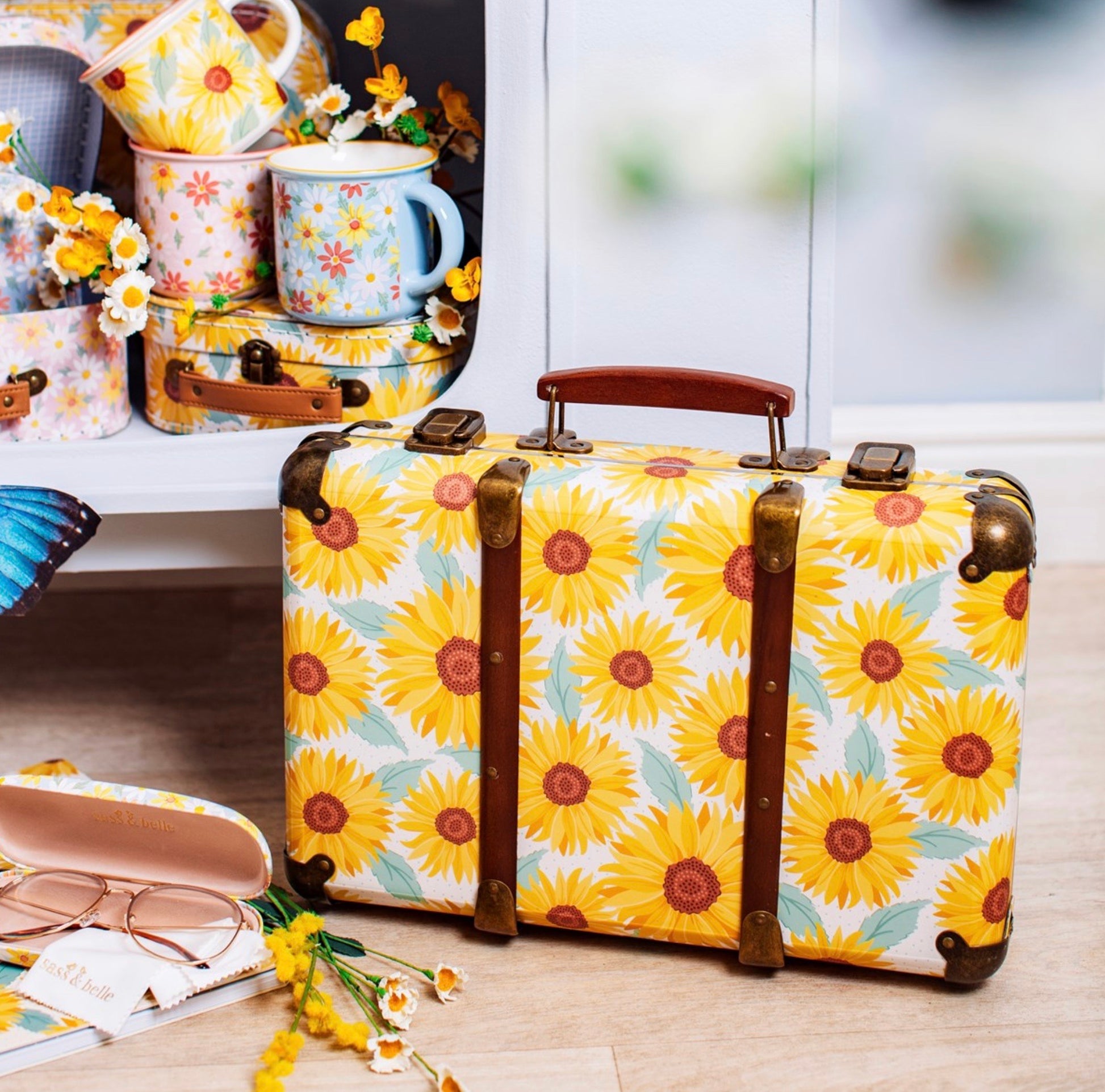 MALETA VINTAGE CON GIRASOLES- SASS & Belle