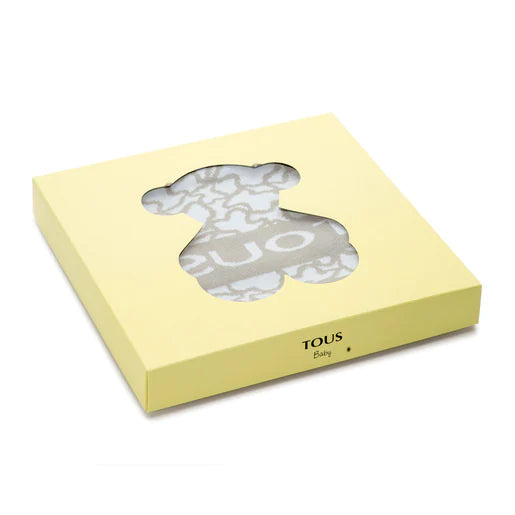 Manta Baby TOUS reversible, confeccionada en jaquard Kaos con hilatura de algodón 100% orgánico y fabricada de forma artesanal para arropar al bebé en todo momento y lugar.