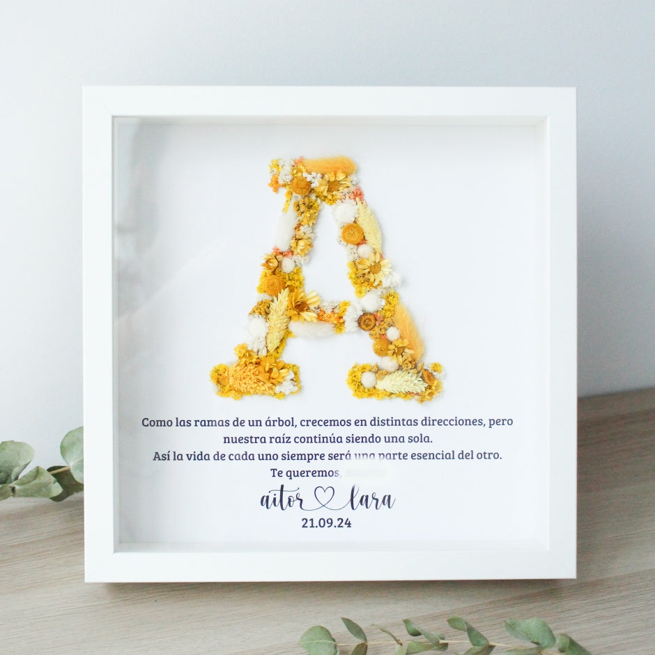 ¡Descubre el regalo perfecto! Nuestro marco personalizado con una inicial decorada con flores es la combinación ideal de elegancia y creatividad. Cada letra está cuidadosamente diseñada con detalles florales únicos, resaltando la belleza de la naturaleza en un estilo delicado y sofisticado. Es ideal para regalar en cumpleaños, aniversarios, para tus personas favoritas el día de tu boda o para dar un toque personal a tu hogar.