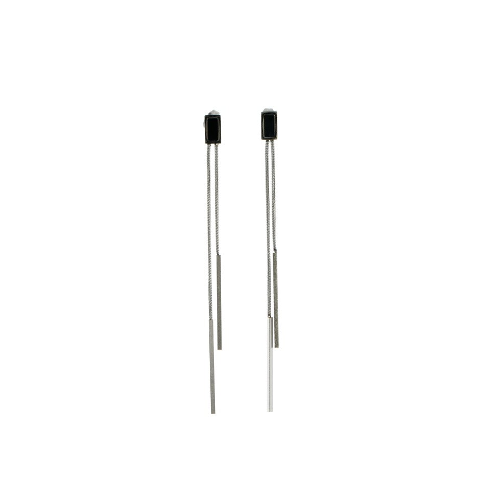 Pendiente de acero en color plateado con base pequeño rectángulo en color negro y colgante doble cadena