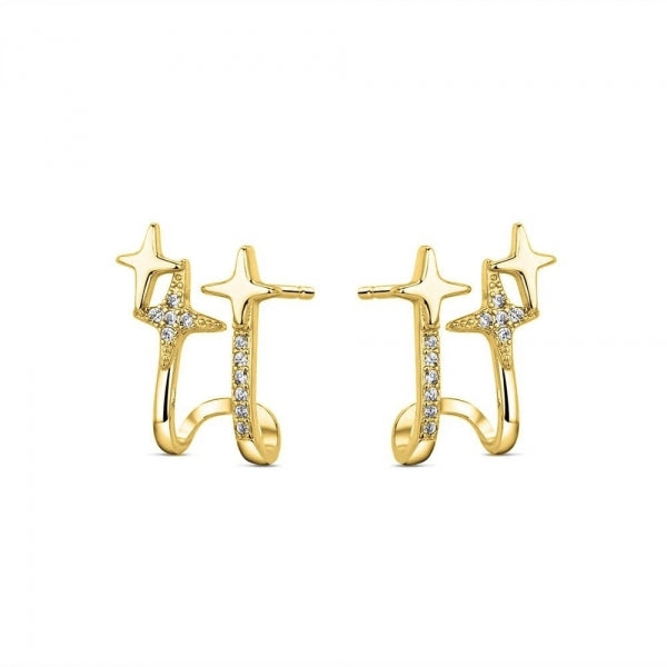 Pendiente de plata chapado triple con estrellas de circonitas cierre presión