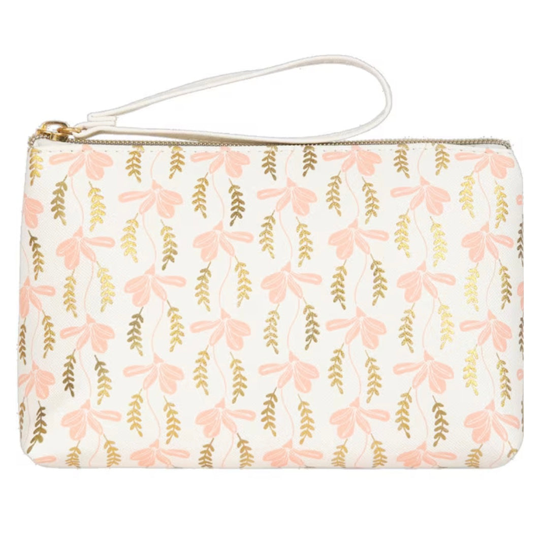 Portatodo Grande con Cremallera HOJAS Blanco, Rosa y Dorado - DRAEGER