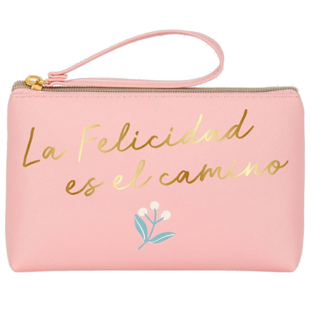 Portatodo Grande con Cremallera LA FELICIDAD ES EL CAMINO Rosa y Dorado - DRAEGER