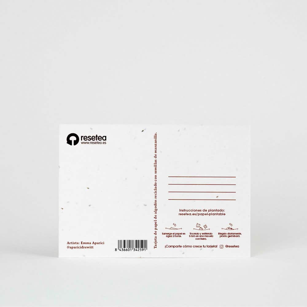 Esta tarjeta está impresa sobre papel de algodón reciclado con semillas de flor de aliso.