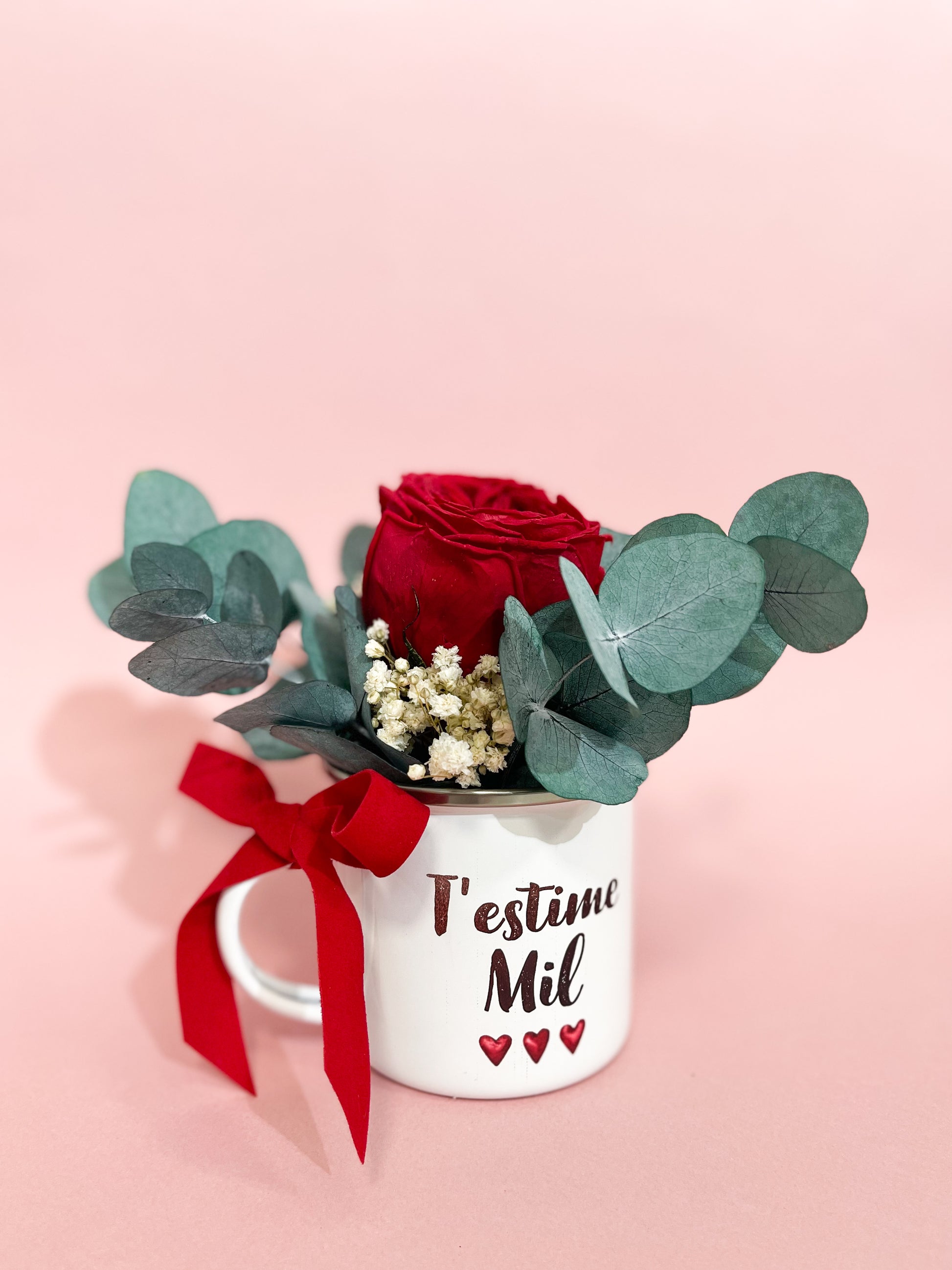 Rosa Eterna en Taza Vintage - T'estime Mil/ Te Quiero Mucho - Be Love