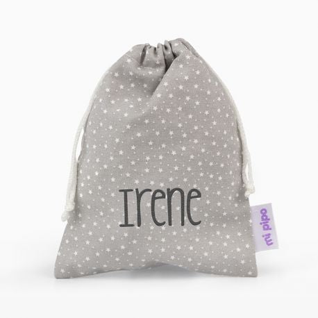 La bolsita Gris con estrellitas blancas contiene todos los productos en azul.