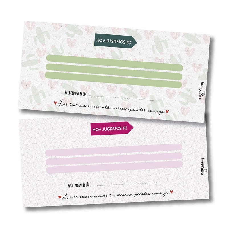 Contiene 15 vales taladrados con ideas + 5 para rellenar.